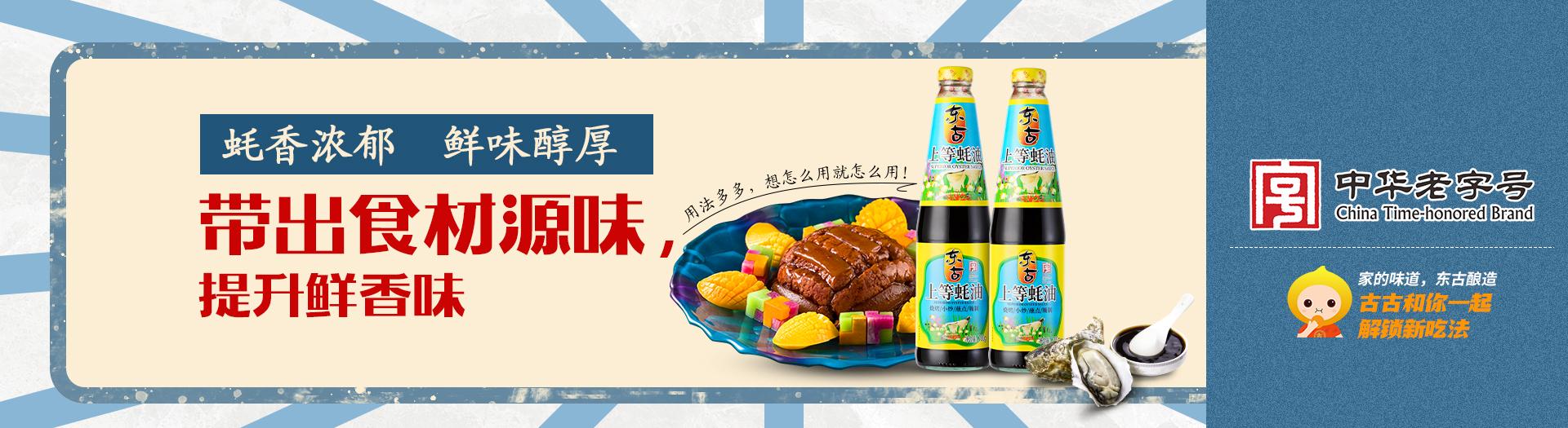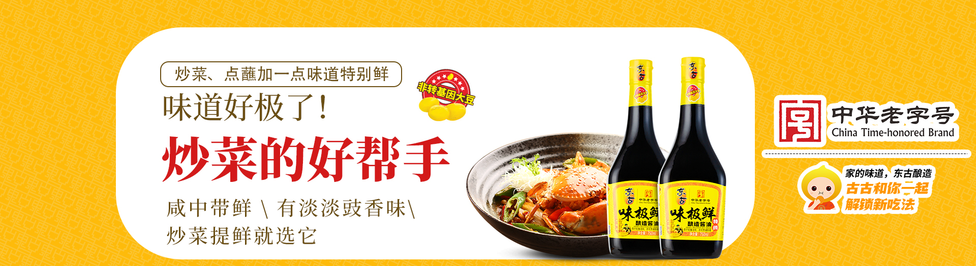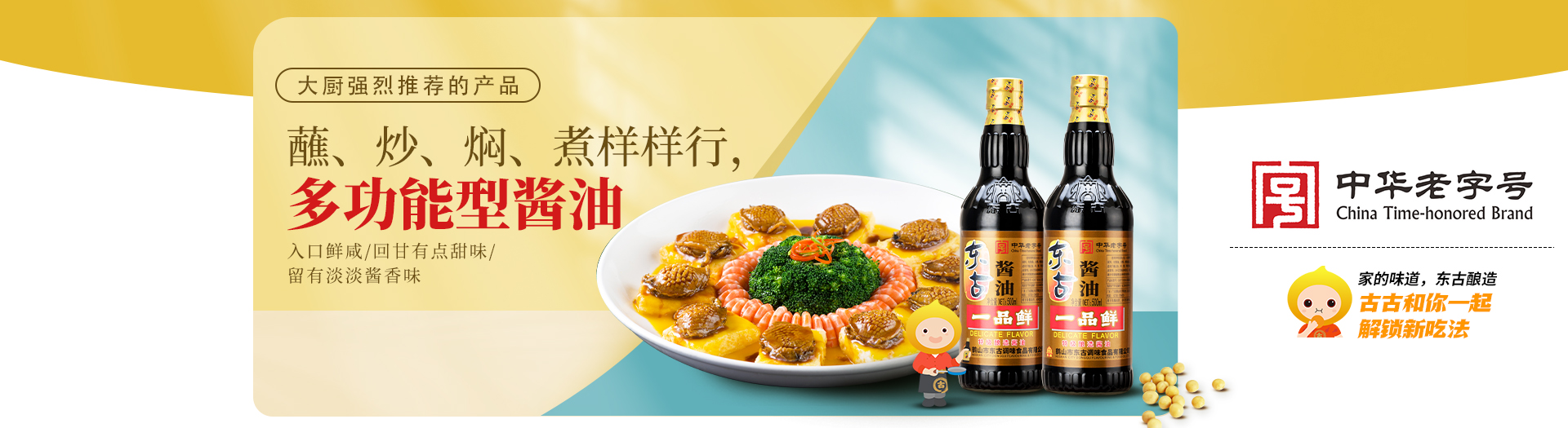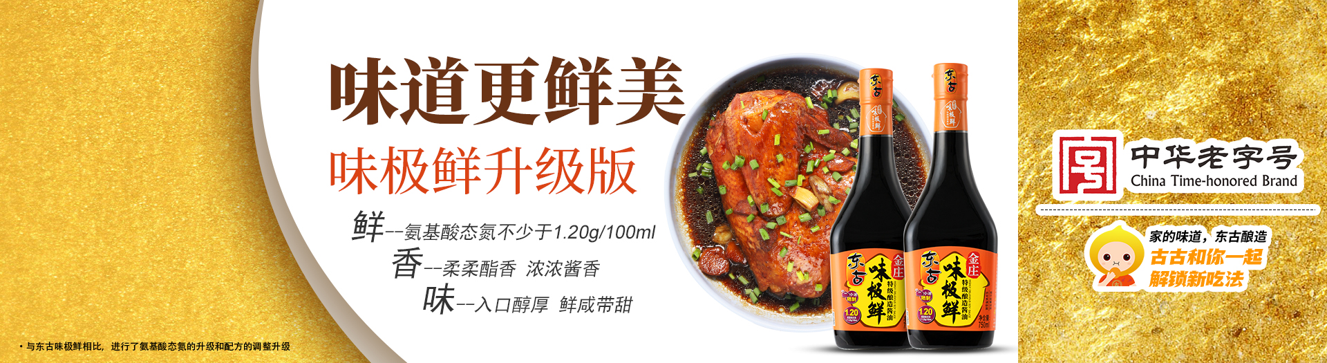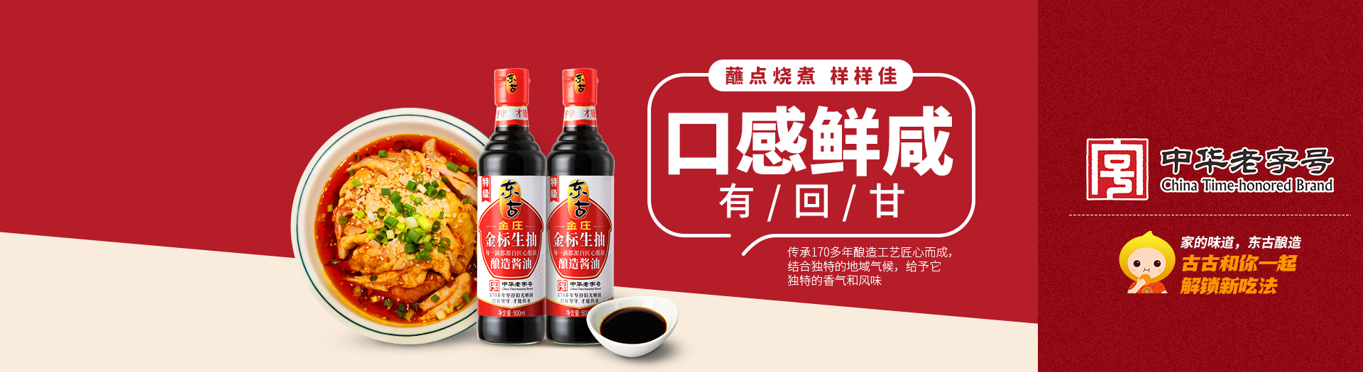 百年传(chuan)承,东古酿造,东古积攒(zan)着(zhe)传(chuan)统(tong)的(de)味道,用最(zui)传(chuan)统(tong)的(de)酿造工艺保留着(zhe)最(zui)原始的(de)鲜美(mei)。