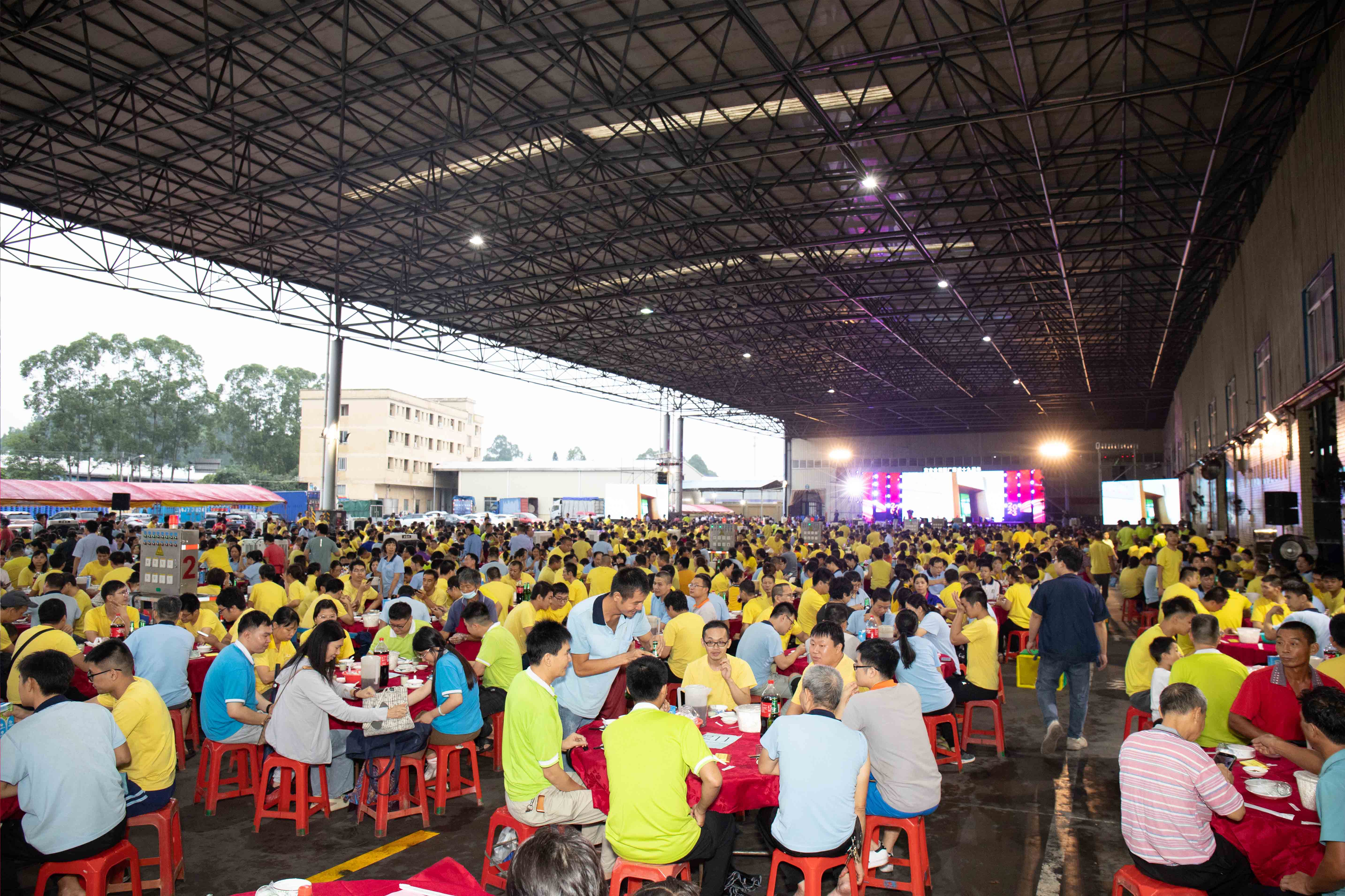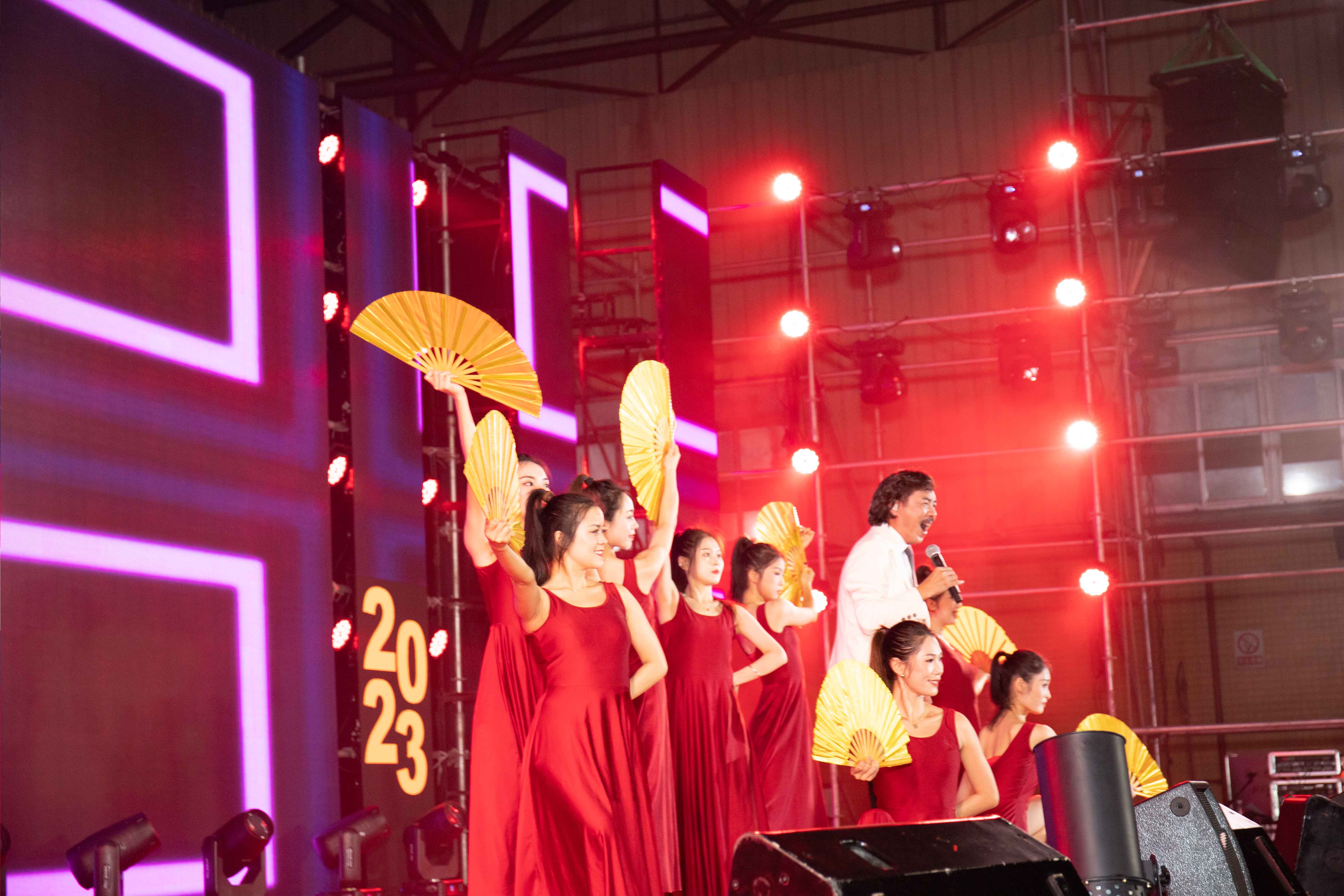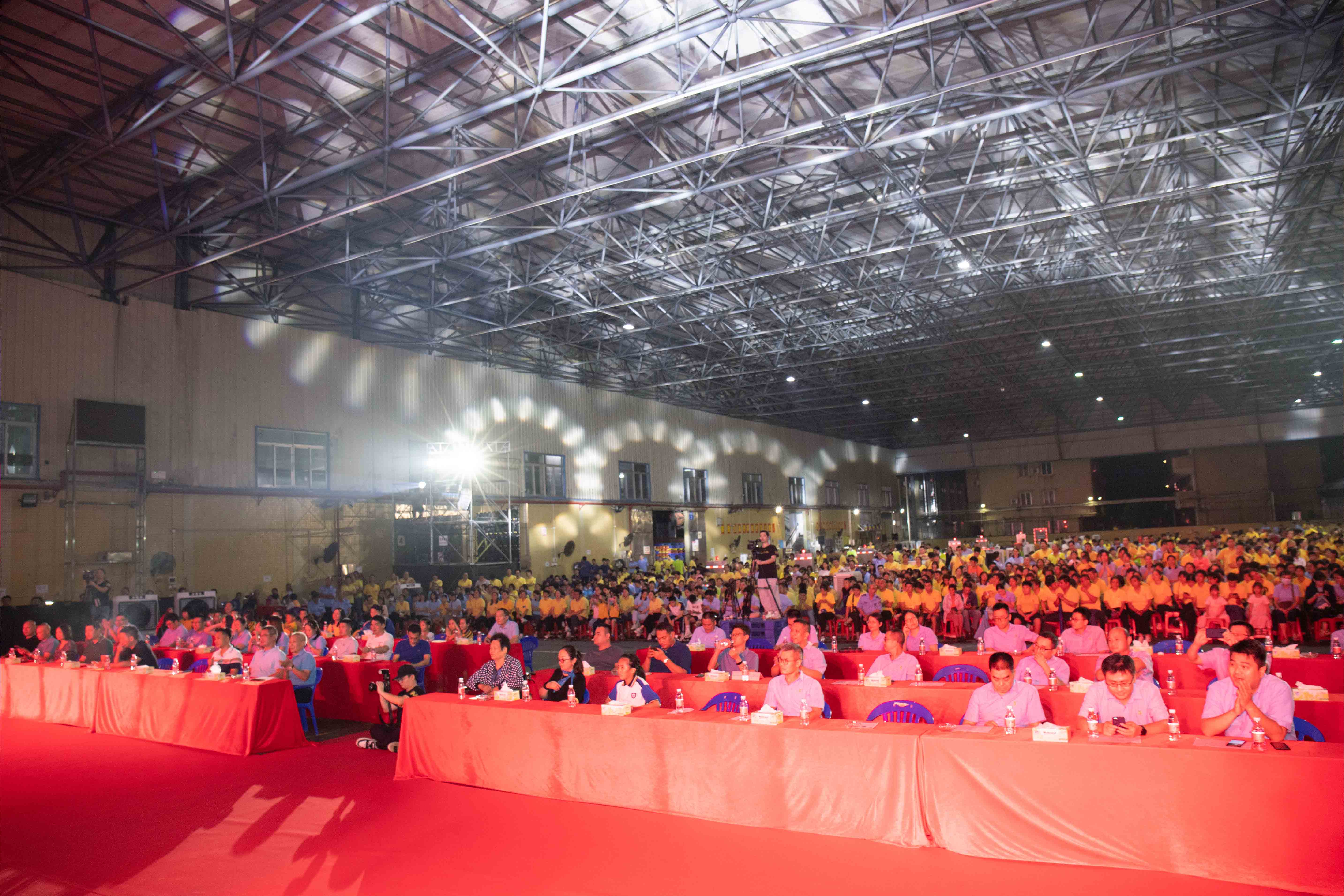 東(dong)古廠慶的(de)現場張(zhang)燈結彩,一(yi)片喜慶(qing)的氛(fen)圍(wei),彩(cai)旗迎風(feng)飄揚(yang),為整個廠區(qu)增添了(le)濃厚的節日氣氛。