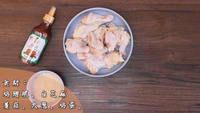 雞翅根 大(da)蔥 姜 蒜(suan) 白芝(zhi)麻 雞蛋