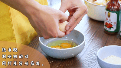 趁著腌制雞翅(chi)的(de)時(shi)間打發好雞蛋液