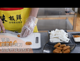 香腸底部切兩(liang)刀,切成開花的樣子。
