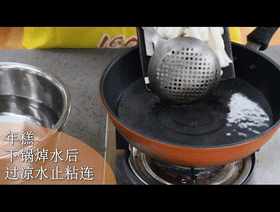 年糕(gao)下(xia)鍋焯水后(hou)過涼水,防止粘連。