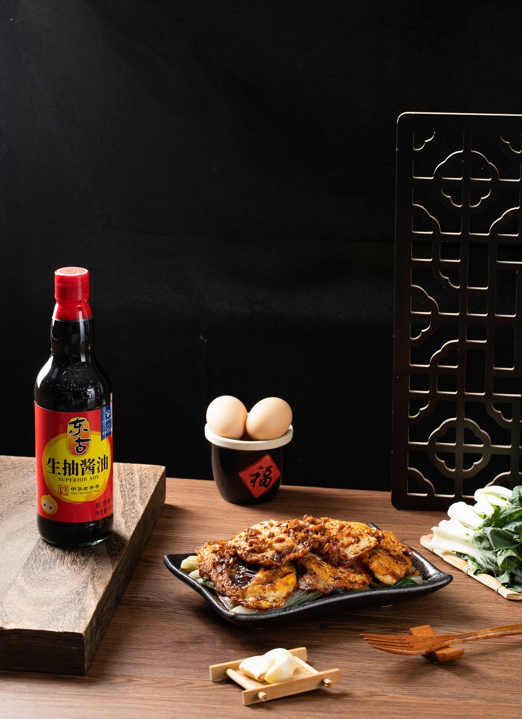 再起鍋燒油(you)(you)、倒入蒜蓉爆香轉小火,加入一勺(shao)(shao)東古(gu)香格辣(la)、一勺(shao)(shao)東古(gu)生(sheng)抽(chou)醬油(you)(you)和老抽(chou)醬油(you)(you)、半碗水、一勺(shao)(shao)白糖攪拌均勻(yun)