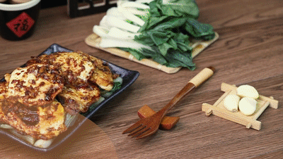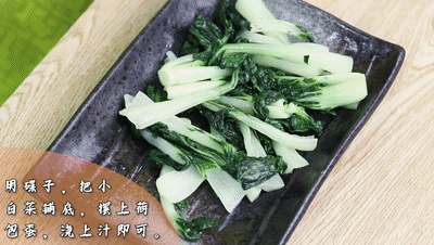 拿一個碟(die)子,把小(xiao)白菜鋪底,擺上(shang)荷包蛋,澆上(shang)汁即可