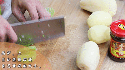 萵筍、土(tu)豆和蓮藕切成自己(ji)喜歡的(de)大(da)小