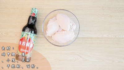 切好(hao)的雞翅加入一(yi)勺胡椒(jiao)粉、一(yi)勺東古醬油(you)、一(yi)勺東古料(liao)酒(jiu)、一(yi)勺東古蠔(hao)油(you)、一(yi)勺鹽抓拌均勻