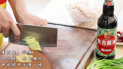 姜塊切(qie)姜絲(si),小蔥切(qie)成小段,雞中翅(chi)從中間切(qie)開方便(bian)入(ru)味