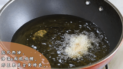 鍋里起火(huo)熱油(you)(you),油(you)(you)溫6成(cheng)放入雞翅,炸(zha)至表皮(pi)金黃撈出,再把油(you)(you)溫燒至8成(cheng)熱,雞翅炸(zha)至表皮(pi)酥(su)脆撈出控(kong)油(you)(you)備用(yong)