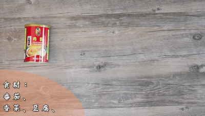番茄、豆腐切(qie)塊、姜蒜(suan)拍(pai)扁、
