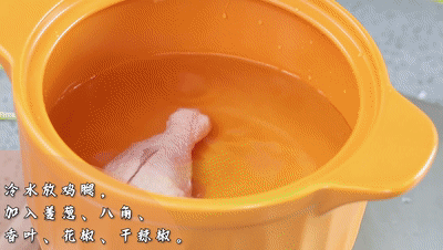 最后就是熬雞(ji)湯:鍋里放水(shui),冷水(shui)放入(ru)(ru)兩個雞(ji)腿(tui),加(jia)入(ru)(ru)姜、蔥(cong)、八(ba)角(jiao)、香葉、花椒、干辣(la)椒,蓋蓋熬半(ban)個小時,加(jia)入(ru)(ru)一勺東古(gu)一品鮮雞(ji)精和(he)東古(gu)雞(ji)粉,在熬煮10分鐘(zhong)