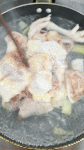 雞肉焯水,加姜(jiang)片,東古料酒(jiu)去腥