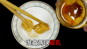 準備兩塊腐(fu)乳,加入白(bai)砂糖攪拌均勻