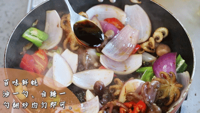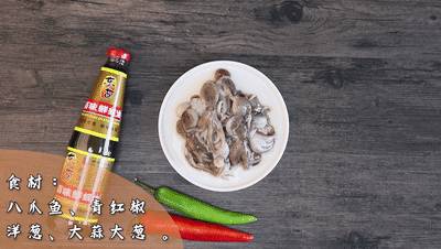 八爪魚、洋蔥、青(qing)紅椒、大蔥、大蒜(suan)、白胡椒粉