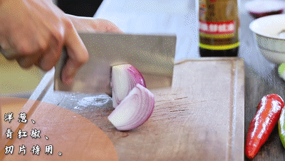 洋(yang)蔥、青(qing)紅椒切片