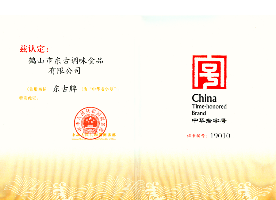 中(zhong)華(hua)老(lao)字號證書(shu)