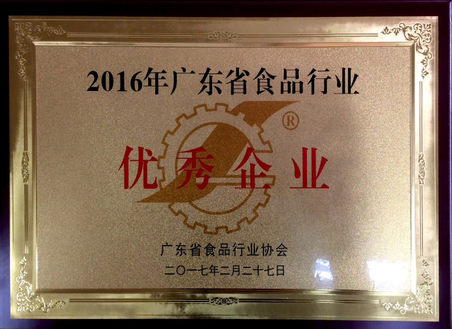 2016年食品行(xing)業優秀企業牌匾(bian)