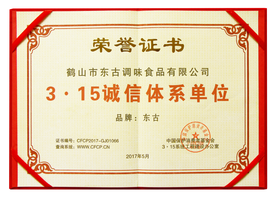 2017年(nian)5月(yue)315誠(cheng)信體系單位證書