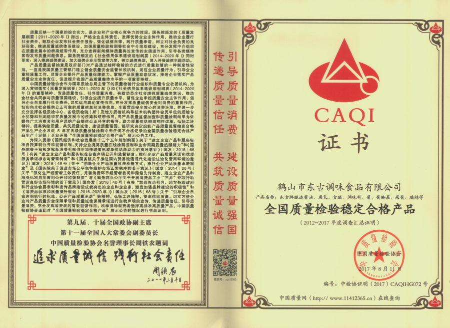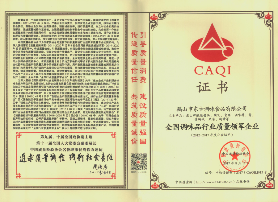 2017全國調(diao)味品行業(ye)質量領軍企(qi)業(ye)