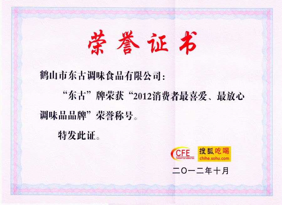 2012消(xiao)費者最喜愛、最放(fang)心(xin)調味品品牌