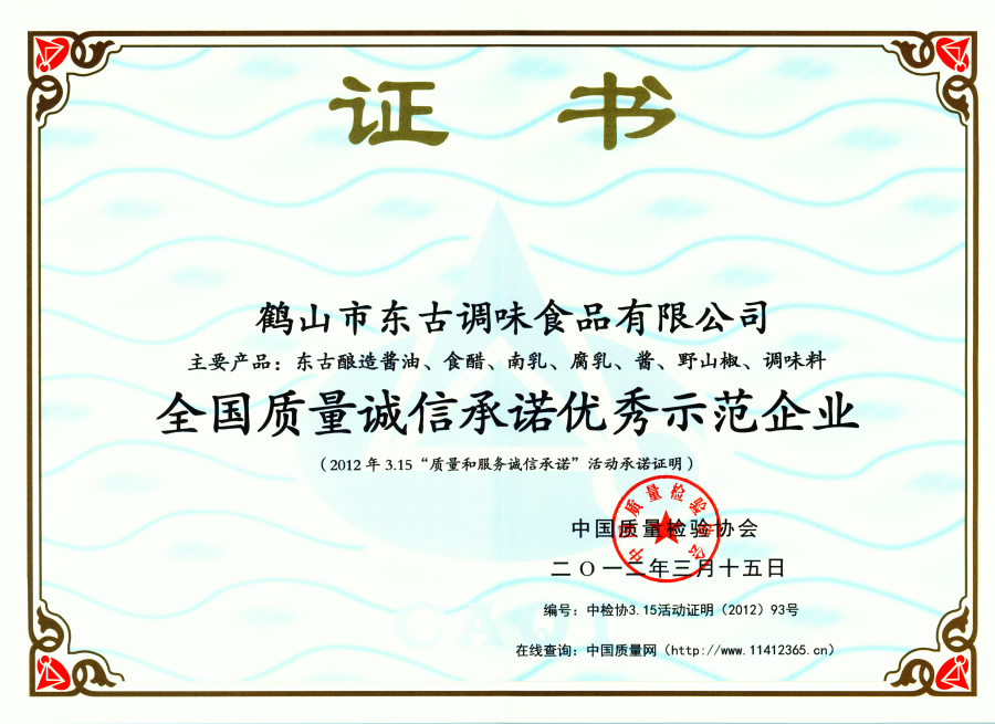 2013全國質量(liang)誠信(xin)承諾優秀示(shi)范企業