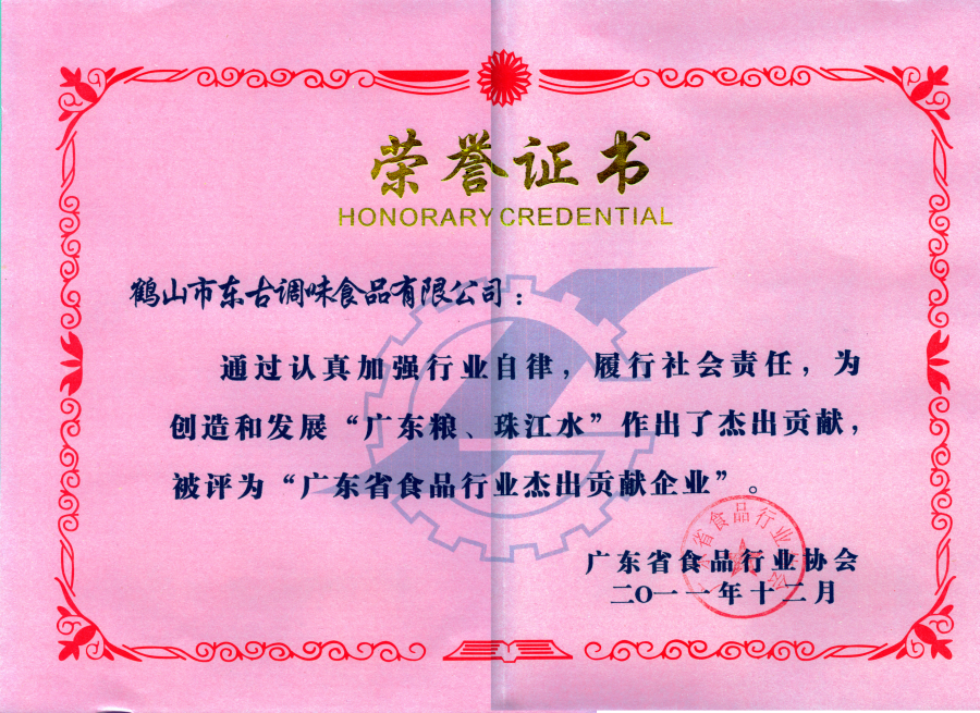 2011廣東(dong)省食品(pin)行業杰出貢獻企業